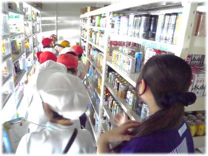 普段は見ることのないお店の裏側(飲料補充スペース、レジ内など)も入らせてもらえたり、接客している様子を見学させてもらえたりと、3年生にとっては夢のような時間でした。