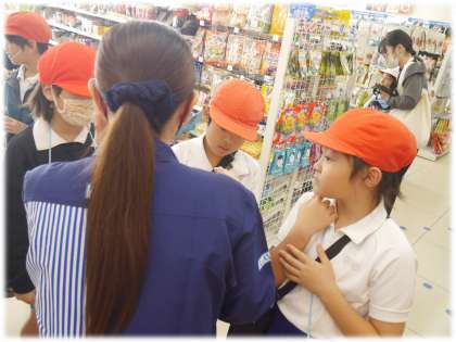 社会科「店ではたらく人」の単元の学習として、今日は学校近くのコンビニエンスストアへ実際に出かけ、お店の中を見学したり、働く方にインタビューを行ったりしました。