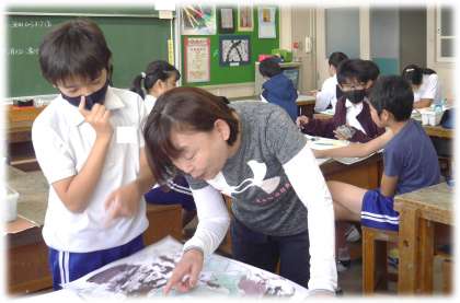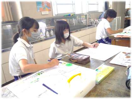 10月25日(金)6年生 図画工作科の授業の様子 公開日 2024/10/25 更新日 2024/10/25 各学年から 6年生も読書感想画に取り組んでいます。ずいぶんと着色も進んできました。竜のうろこ一枚一枚も、色を変えたり、ちょんちょん塗りで濃淡をつけたりと、工夫しています。 6年生