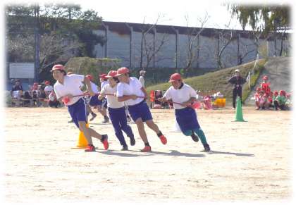 11月4日(月)令和6年度運動会「赤白の最高到達点を見せつけろ」22 公開日 2024/11/04 更新日 2024/11/04 学校行事 スタート地点に戻って棒を渡して終わりかとおもいきや、全員の下を通して、ジャンプで棒を飛び越える「ハード」さ。見た目以上に体力を使う競技です。さすが高学年ですね。力強さと俊敏性をいかんなく発揮していました。 1年生 2年生 3年生 4年生 5年生 6年生 5678組 行事