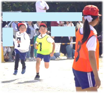 最初は3年生です。5年生と同様、3クラスのため、学級内を赤白に分けての対抗戦。自分が頑張ることが仲間の頑張りにもつながり、仲間が頑張る姿から自分のモチベーションもあげて、一生懸命に走り抜く3年生です。
