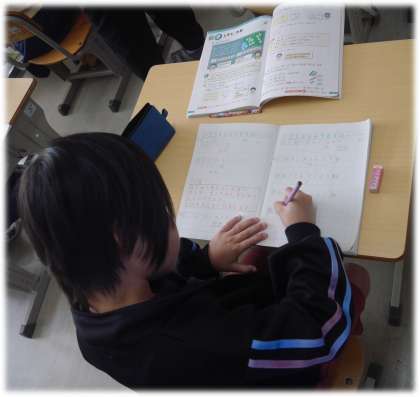 11月7日(木)2年生 算数科の授業の様子 公開日 2024/11/07 更新日 2024/11/07 各学年から 増えたり減ったりする数について、これまで文章にそって2つの式で考えていた問題を一つの式にまとめて解く方法を学び、練習問題に意欲的に取り組んでいました。教科書だけではなく、先生問題にも積極的に取り組んでいました。 「先生問題、簡単だよ〜」と、担任に〇をつけてもらい、にこにこの2年生です。 2年生