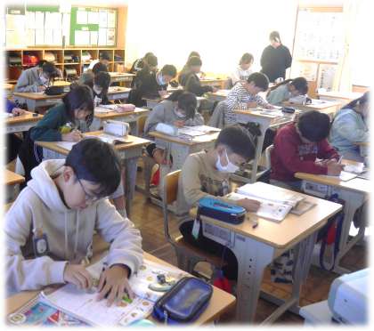 11月7日(木)5年生 外国語科の授業の様子 公開日 2024/11/07 更新日 2024/11/07 各学年から 英単語を書いたり、リスニングをしてアクセントの位置を確認したりしています。教科担任の発音をまねて、「LOVE」の「V」の発音も唇を震わせながら「ヴー」と出していました。何度も繰り返し練習することで、発音もつかめてきますね。 5年生