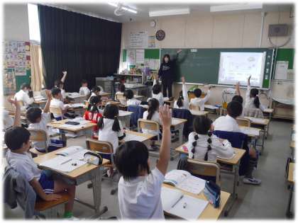 11月11日(月)2年生 算数科の授業の様子 公開日 2024/11/11 更新日 2024/11/11 各学年から 1組では、単元「かけ算」の学習を進めています。 単に立式するだけではなく、かける数とかけられる数がそれぞれ何を表しているのかをしっかり考え、確かめ合っていました。 「〇〇さんに付け足しで、4は4人という意味です。」 友達の考えもよく聞いて、さらにくわしく説明しようとつなげる発言ができていてすてきでした。 2年生