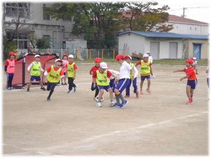 11月14日(木)2年生 体育科での出前授業の様子4 公開日 2024/11/14 更新日 2024/11/14 各学年から そして、いよいよゲームの時間です。学級ごとの対抗戦。コート内をかけまわり、シュートをねらえるように、相手ゴールまでチームのみんなでボールを運びます。一生懸命にボールを追う姿に、コート外で球拾いのため待機している子からも応援する声が届きます。 1時間の出前授業でしたが、1時間めいいっぱい体を動かし、満足気な2年生でした。 2年生 5678組