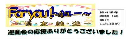 11月14日(木)4年学年通信「For you!〜4ユー〜」第10号を発行しました