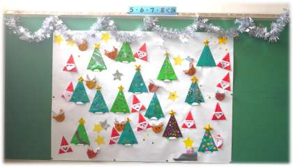 11月18日(月)冬の足音も聞こえてきます 公開日 2024/11/18 更新日 2024/11/18 各学年から 今週は、先週までの暖かさから一転、12月並みの寒さになる日も多い予報です。5・6・7・8組の掲示板には、一足早く、冬の訪れを感じる掲示物が登場しました。毎月、授業で作ったり、描いたりした、季節を感じるすてきな作品を飾ってくれています。 5678組