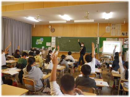 11月19日(火)5年生 社会科の授業の様子 公開日 2024/11/19 更新日 2024/11/19 各学年から 1組では、日本の工業生産について学んでいます。これからの工業生産を考えるときの大切な視点をみんなで考え合っていました。考え方のヒントが教科担任から提示されると、教科書に書かれていることを参考に、キーワードを絞っていきました。 5年生