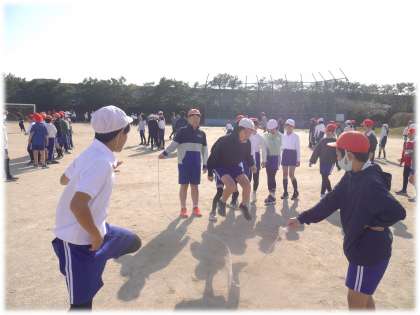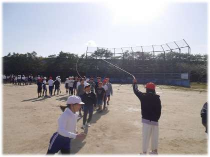 こちらは5年生の8の字跳びの練習の様子です。休み時間も使って練習を積み重ねている5年生。8の字の跳ぶ回転率がずいぶん速くなってきたのは、練習の成果の賜物ですね。