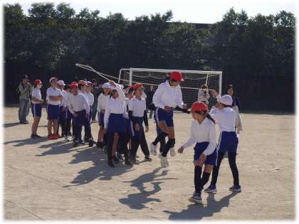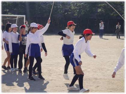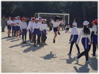 12月3日(火)5年生 なわとび記録会の様子2 公開日 2024/12/03 更新日 2024/12/03 学校の特色ある活動 記録会の最後を締めくくる5年生の8の字跳びです。2年生も元気よく応援していました。 どの学級からも、自分たちの跳んだ回数を声を合わせて数える元気のよい声、リズムよく跳ぶ姿が青空のもと、輝いていました。 こちらは、5年1組です。 5年生 5678組 特色ある活動