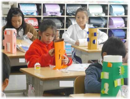 12月4日(水)2年生 図画工作科の授業の様子 公開日 2024/12/04 更新日 2024/12/04 各学年から 2年1組の図画工作科の授業の様子です。 厚紙を建物に見立て、扉を開けると・・・。自分のイメージを形にする工程を楽しみながら、意欲的に制作を進める2年生です。 2年生