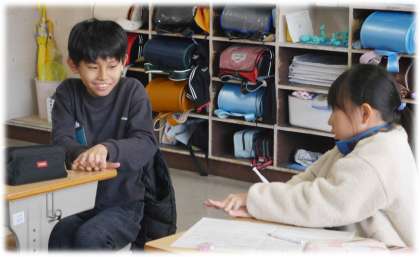3年1組の様子です。先週校外学習で出かけた消防署の見学を通じて発見したことを学級で出し合い、整理していました。消防士の方から教えてもらった救急蘇生法の手の使い方について気付きを発表していた仲間が、実際に動作で確認する場面がありました。それを聞いて、「そうそう」と、すぐに隣同士で確認し合う姿がありました。体験を通して得たことは、より記憶に刻まれていますね。学習プリントには、どの子も多くの気づきが記されていました。