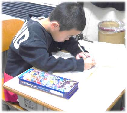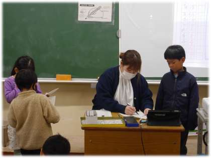 「先生に見てもらって、真っ赤っかになったけどね、この字は上手ってほめられたよ。」と、「の」の字を示してうれしそうに教えてくれる1年生もいます。さらに、自分の字が、先生に教えてもらったように、美しく書けるようになりたいと、練習にも熱が入っています。がんばった証が、鉛筆で黒くなった手に表れています。