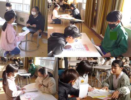 今日は、ふれあいタイムに九九チャレンジです。昨日に続いて、学習ボランティアの方、そして6年生が検定のお手伝いを行っています。そのおかげで、多くの2年生が複数回のチャレンジをすることができています。