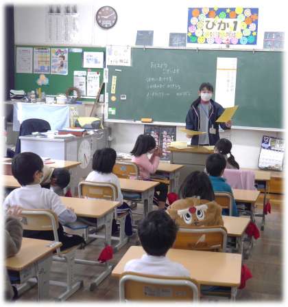 1年1組では、12月のノーメディアデーの振り返りを行っていました。子どもたちが家族と一緒に取り組んだ過ごし方を紹介しながら、担任は「すてきだね」「その過ごし方、いいね」など、価値づけを行っています。また、学級の子どもたちの取組を全体で共有することで、子どもたちにとっても「次は、〇〇して過ごしてみよう」と、1月の行動目標を考える機会となっていました。月に一度の取組ですが、子どもたちの中でメディアとの付き合い方を考える機会を重ねることは、「なんとなく使う」から脱却し、考えて使う力を高めていくと考えます。何より、この取り組みはご家庭の協力なしに行えません。毎月、子どもたちの取組を一緒に考え、支えてくださる保護者のみなさま、ありがとうございます。