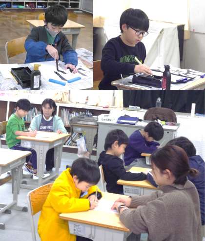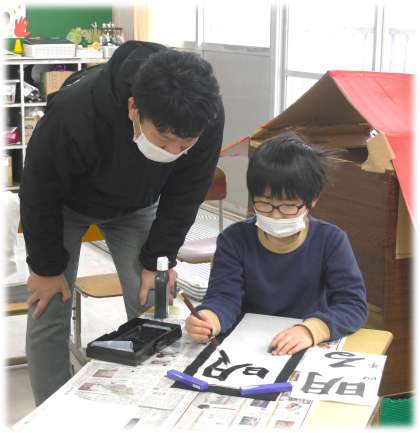 1月7日(火)5・6・7・8組 書き初め大会の様子