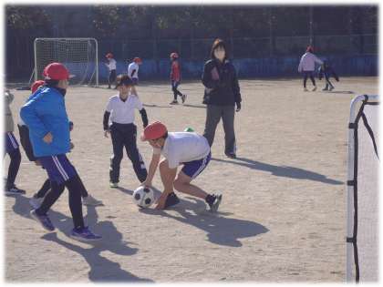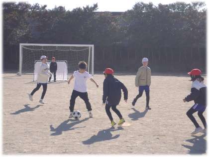 1月17日(金)4年生 体育科の授業の様子 公開日 2025/01/17 更新日 2025/01/17 各学年から 4年2組では、3つのミニコートに分かれて、サッカーのゲームを行っていました。相手をかわして、見事ゴールが決まると、ガッツポーズや「ナイス!」のかけ声も出ます。逆に、ゴールキーパーのナイスセーブもありました。仲間と一緒に、元気よくボールを追いかけている4年生です。 4年生