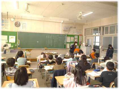 1月22日(水)4年生 国語科の授業の様子 公開日 2025/01/22 更新日 2025/01/22 各学年から 4年2組では、教科書の絵の中に示された漢字を使って、文章づくりに取り組んでいました。駅や列車に関係する文章をつくるために、みんな頭をひねっています。それぞれが考えた文章を全体で出し合う際に、「そういう使い方もあるなあ」と、友達の発表を参考にして、さらに自分のノートに書き出す姿も見られました。 4年生