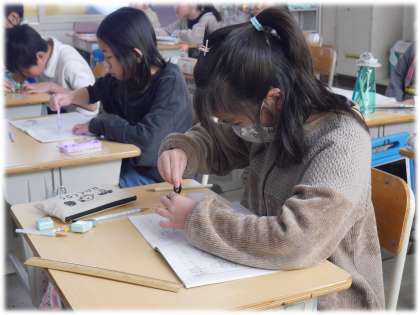 1月23日(木)3年生 算数科の授業の様子 公開日 2025/01/23 更新日 2025/01/23 各学年から 3年3組では、円を使ってできる三角形について考え合っています。まずは、半径3cmの円をコンパスを使って描きます。 「ノートのマス目を使えば、3cmがすぐ分かるよ」と、これまでの学習を生かして作図する姿も見られました。 円の中心と円のまわりをつないで、三角形を作図する場面では、円の性質と三角形の仲間分けの学習をつなげながら、考えていく3年生です。 3年生
