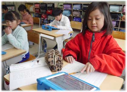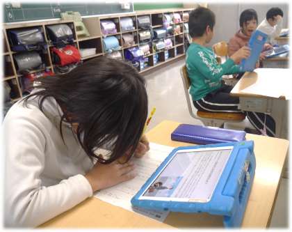 「ドーナツの穴はね・・・」と、自分の興味をもった内容を調べ、その役割を知り、新たな発見に目を輝かせ、その気づきを友達にも分かりやすく伝えようとはりきってまとめる2年生の姿が見られました。