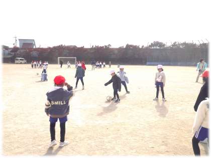 1月30日(木)2年生 体育科の授業の様子 公開日 2025/01/30 更新日 2025/01/30 各学年から 2年2組は、運動場でボール運動に取り組んでいます。風が強く、蹴るボールも風に流される場面が何度もありましたが、声を掛け合いながら、元気よく活動することができていました。 2年生