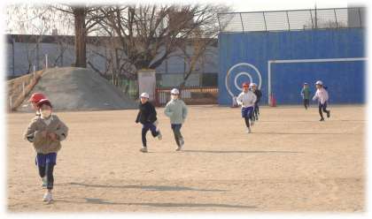 担任のかけ声に、一斉に全速力で駆け出します。はく息は白く、気持ちと体はホットな3年生です。