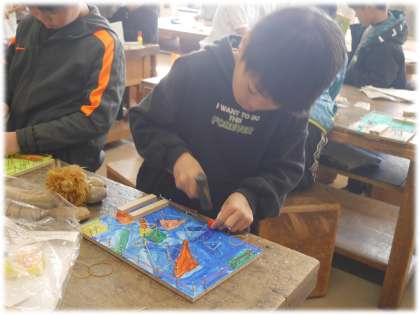2月4日(火)3年生 図画工作科の授業の様子 公開日 2025/02/04 更新日 2025/02/04 各学年から 3年2組が授業を行う図工室から、くぎを打つ「とんとん」という軽快なリズムが聞こえてきました。土台の上に、ビー玉がどのように動くと楽しいかを考えながら、くぎを打っていく3年生。板へまっすぐにくぎを打とうと真剣です。ある程度仕上がってきたら、友達にもビー玉を動かしてもらって、自分の思うとおりにできているか、確認しながら制作に打ち込む姿も見られました。 3年生