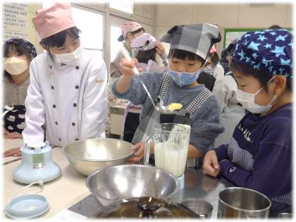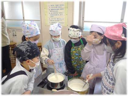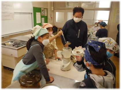 3年生にとって待ちに待った「とうふづくり」の日です。大豆栽培でも講師をしていただたい中甲の方に今回も教えていただきながら、一からとうふづくりに取り組みました。また、多くの保護者ボランティアの方が、授業サポートをしてくださいました。