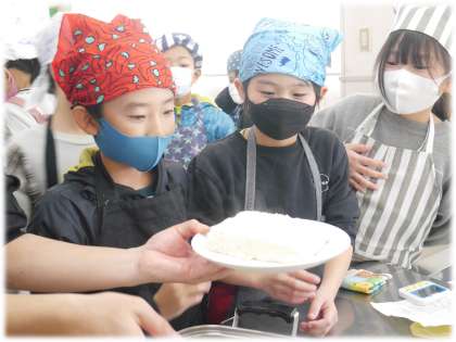 木綿を外す瞬間、息をのむ子どもたち。固まっているとうふを見て、思わず「わぁ〜!」と歓声が上がります。