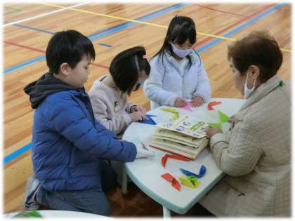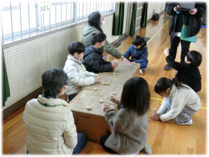 多くの昔遊びから、自分の興味ある遊びを3つ選び、順番に体験することができました。