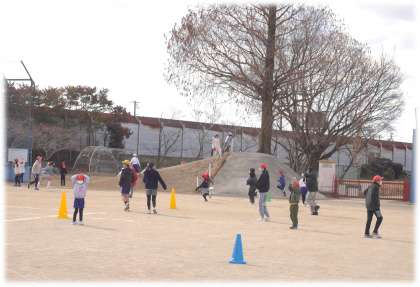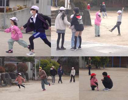 第1弾として、「6年生と遊ぼう」が今日から始まりました。今日は、6年生が1・2年生と元気タイムに楽しく遊ぶ企画を立てて実行しました。運動場には、多くの1・2年生が大好きなお兄さんやお姉さんと遊べるとあって集まってきました。6年生が鬼になって、氷おにを全力で楽しみます。追いかける側の6年生の「おに」は、怖い鬼ではなく、表情からも世界一やさしい鬼に見える、ほほえましい交流でした。