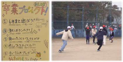 2月12日(水)3・4・6年生 卒業プロジェクト 公開日 2025/02/12 更新日 2025/02/12 各学年から 今日の元気タイムは、3・4年生を対象にした「6年生と遊ぼう」です。月曜日の1・2年生に比べると、さらに運動量がハードになっています。逃げる3・4年生も、追う6年生も真剣勝負な姿がほほえましく感じます。20分間の元気タイムがあっという間に過ぎていきました。 3年生 4年生 6年生