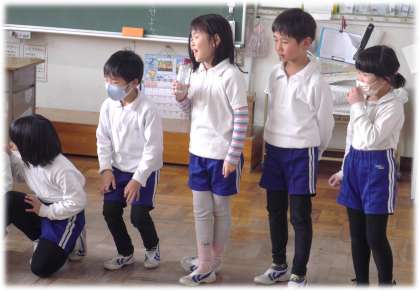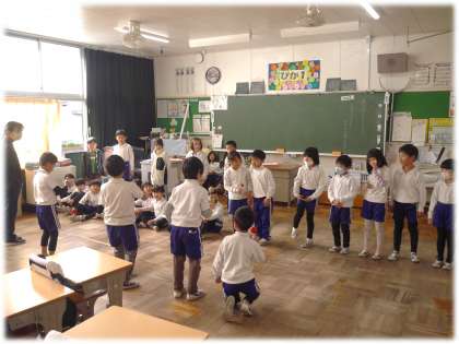 1年1組では、来週に控える6年生を送る会に向けて、学級全体での練習に取り組んでいました。大好きなお兄さんやお姉さんに喜んでもらえるように、セリフも一生懸命に覚えて、相手の顔を見て発表できるように意識している姿がすてきです。学習発表会に向けて何度も練習してきた「伝える」姿勢が、ここにも生かされています。
