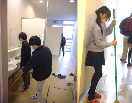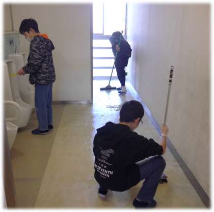 日常の清掃では、きれいにしきれない床の黒ずみや便器の裏側など、汚れをきれいにしようと分担場所で活動している6年生の姿を見ると、いよいよ卒業が近づいてきているのだと実感し、さみしくなります。