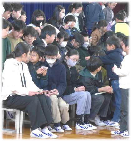 「ぼくたちが育てたアサガオの種です。中学校に入学する頃に種を蒔いてください。夏にはきれいな花が咲きます」と、これから始まる中学校生活を応援する投げかけがありました。きっと、夏に咲くアサガオの花を眺めながら、1年生との温かいかかわりの時間を思い出し、未来への活力となっていくはずです。