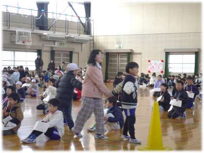 2月19日(水)6年生を送る会10 公開日 2025/02/19 更新日 2025/02/19 学校行事 見つけたペアの2年生を手を引いて陣地に連れていく6年生。2年生もうれしそうです。 1年生 2年生 3年生 4年生 5年生 6年生 5678組 行事
