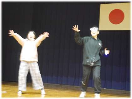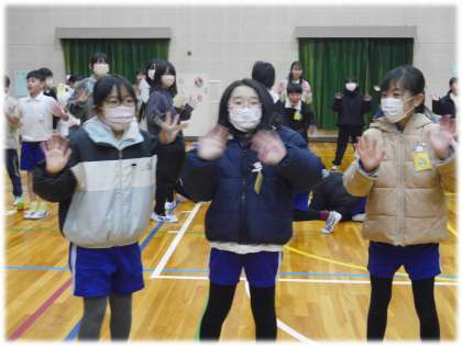 「ここからは、ダンスタイムです!みんなで踊りましょう!」元気な呼びかけとともに、軽快な音楽が鳴り始めました。運動会で1・2年生が躍ったジンジスカンダンスです。運動会でも、応援席から全校が躍り、盛り上がりましたね。もちろん、3年生も、5年生も、6年生もみんな踊れちゃいます!