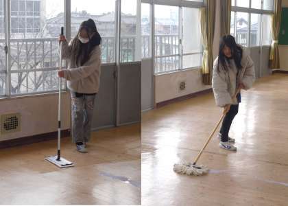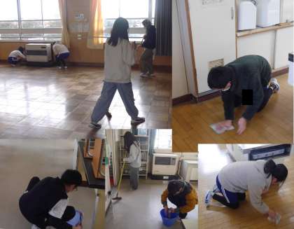 教室や特別教室の机や荷物を廊下に運び出し、掃き掃除、雑巾がけを行い、最後にワックスがけをして、きれいにしてくれました。