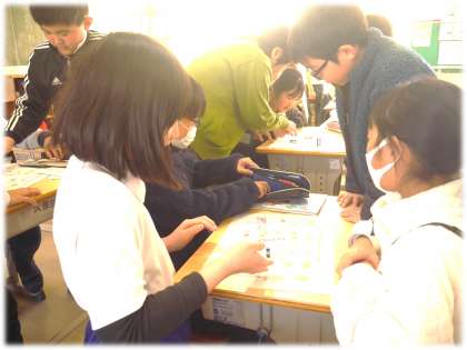 2月25日(火)4年生 外国語活動の授業の様子 公開日 2025/02/25 更新日 2025/02/25 各学年から 4年2組では、グループに分かれて、英語で「すごろく」に挑戦です。和気あいあいと英語での発話もしながら楽しんで取り組んでいました。マスには、「かわいいポーズ」「ALTと英語であいさつ」など、ミッションもあり、盛り上がりました。 4年生