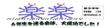 2月26日(水)5年生 学年通信「楽楽」第12号を発行しました