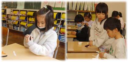2月27日(木)1年生 図画工作科の授業の様子 公開日 2025/02/27 更新日 2025/02/27 各学年から 1年1組では、モールとスポンジ素材の接着芯を使って、「すきまちゃん」を作っています。この「すきまちゃん」、隙間が大好きなようです。モールで腕や足の形を工夫して、マジックで表情をつけて・・・。説明をしっかり聞きながら、自分の「すきまちゃん」を楽しみながら作る1年生です。 さて、それぞれの「すきまちゃん」は、どんな隙間を見つけるでしょうか。 1年生