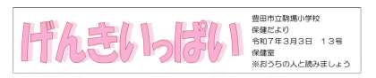 本日、ほけんだより「げんきいっぱい」第13号を発行し、お子様を通じて配付しています。内容についてご一読ください。