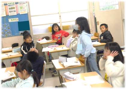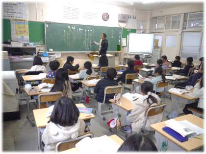 2年2組でも、単元「お手紙」の学習を進めています。がまくんとかえるくんの関係性から、かえるくんの気持ちを学級のみんなで考え合っていました。実際に、自分だったらと、自分の気持ちをかえるくんやがまくんに重ねて考える場面もありました。みんなで考えることで、どんどん読みが広がっています。