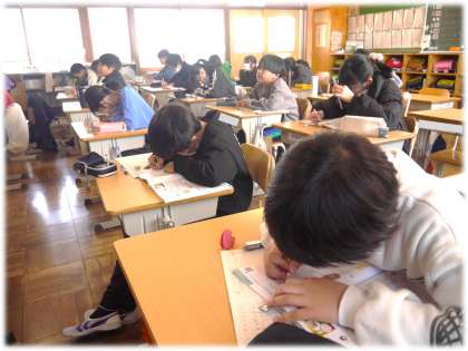 3月10日(月)5年生 算数科の授業の様子 公開日 2025/03/10 更新日 2025/03/10 各学年から 5年1組では、円グラフや帯フラフの書き方を学んでいます。グラフの書き方のポイントを確認しながら、表から読み取った情報をグラフ化していきます。 5年生