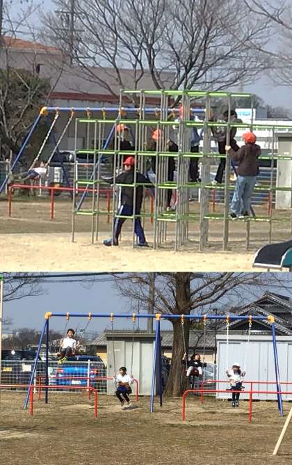 今日の元気タイムもそれぞれの学年の子どもたちが元気よく校庭や中庭で遊んでいる姿が見られました。日差しもぽかぽかで、友達と元気よく駆け回るときに肌に感じる風が心地よく感じました。