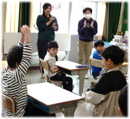 4月11日(金)5678組 今日の様子 公開日 2025/04/11 更新日 2025/04/11 各学年から 1年生がお兄さん、お姉さんの写真を持って、その子の席まで行くと、「(大きく)まるです!」「ばっちりです!」「グー!」など、それぞれの表現でにっこりあいさつを交わしています。お兄さん、お姉さんの笑顔で、1年生も安心ですね。 5678組