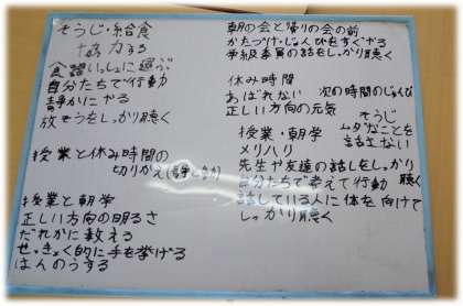 1組では、「目指す学級の姿」をふまえて、具体的な行動目標を班で出し合い、学級全体でも練り合っていました。発言する子どもたちの一言一言に「力」を感じます。行動をつなげていく「過程」に、自分たちが創る、自分たちの学級がかたどられていくはずです。