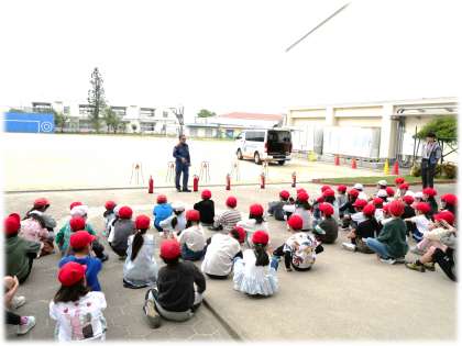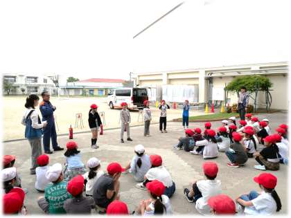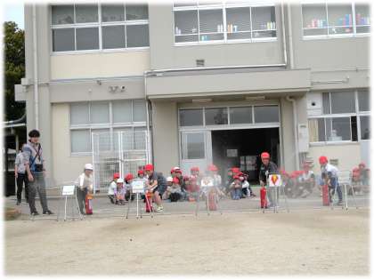 4月18日(金)3年生 防災訓練の様子 公開日 2025/04/18 更新日 2025/04/18 学校行事 3年生は、水消火器の訓練です。火災を周りの人たちにも知らせるために、「〇〇から火事だ!」と2回大声で繰り返し、火のイラストの的をめがけて、水消火器を噴射します。 火事に出くわしたときに、近づかないこと、大人に知らせることが基本ですが、こうした消火を行う経験も、いざというときに使える技になるはずです。 3年生 行事