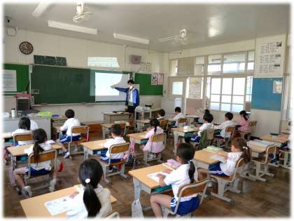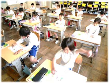 4月21日(月)1年生 国語科の授業の様子 公開日 2025/04/21 更新日 2025/04/21 各学年から 1年1組では、先週に続いて、今日は平仮名の「し」の学習を行っています。始筆を「とん」と声をそろえて意識し、終筆のはらいまでリズムを意識して指鉛筆で練習をします。 「背筋がぴんと伸びて、よい姿勢だときれいな字が書けるようになるんだったね」そんな担任の一言で、姿勢も意識する1年生です。 1年生