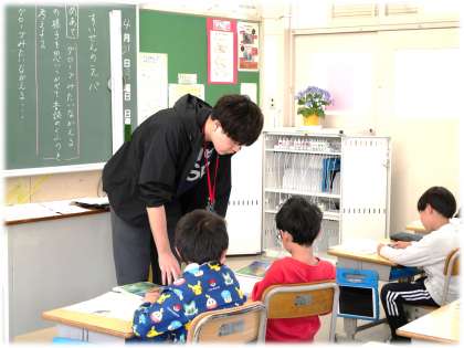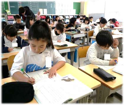 4月21日(月)3年生 国語科の授業の様子 公開日 2025/04/21 更新日 2025/04/21 各学年から 3年2組でも、単元「すいせんのラッパ」の学習を進めています。今日は、「グローブみたいなかえる」の様子が伝わる音読の工夫を考え合う授業です。まずは、自分なりにどのような音読にするとよいのかを考え、学習プリントにその考えを書き込んでいました。 3年生